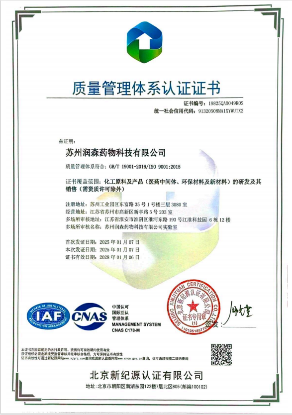 蘇州潤(rùn)森藥物科技有限公司位于江蘇省蘇州市是集開(kāi)發(fā)、銷(xiāo)售,生產(chǎn)于一體的專(zhuān)業(yè)性化學(xué)品公司。